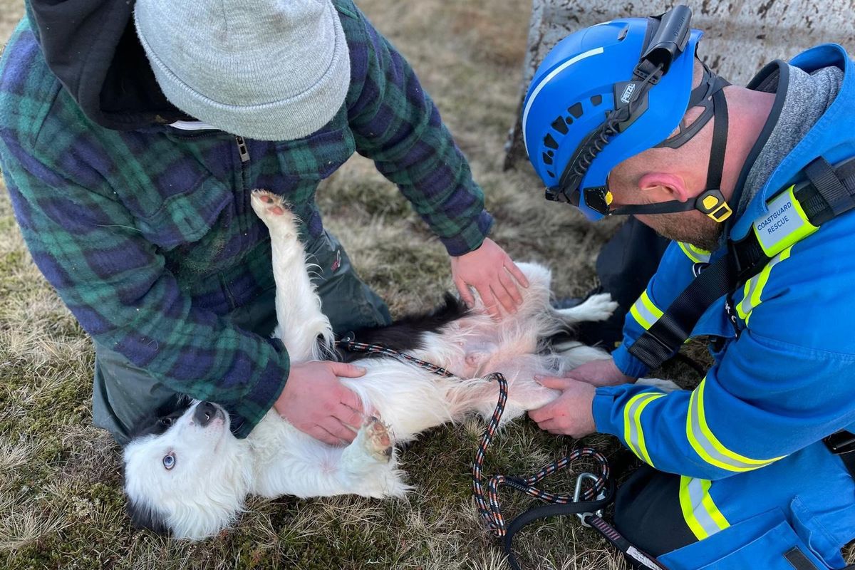 For three hours, the coastguard crew persevered with their rope equipment, gradually manoeuvring the Collie from his precarious perch back towards the clifftop.